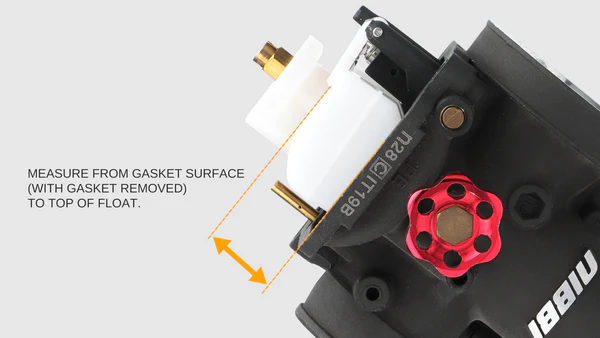 Вы хотите установить высоту поплавка так, чтобы мотоцикл работал на точном количестве топлива, которое ему необходимо, ни больше, ни меньше. Чтобы установить высоту поплавка, сначала необходимо определить текущие настройки. Это можно сделать двумя способами: с помощью внешней измерительной трубы или путем измерения физической высоты поплавков над поверхностью прокладки.