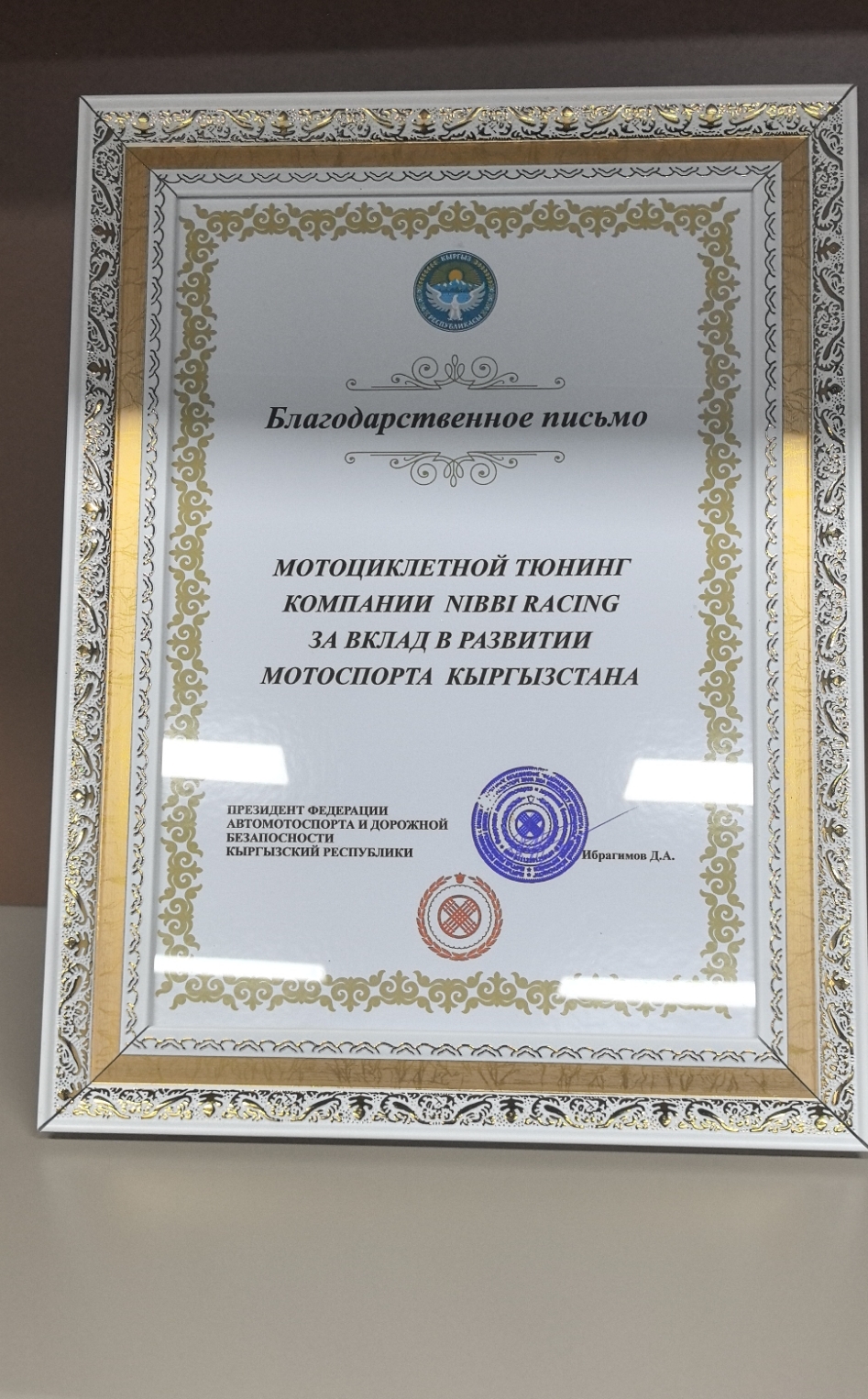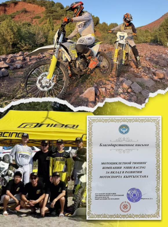 Недавно NIBBI RACING получила официальное благодарственное письмо от Федерации автоспорта и безопасности дорожного движения КР, в котором признается выдающийся вклад NIBBI в содействие развитию мотокросса в регионе.