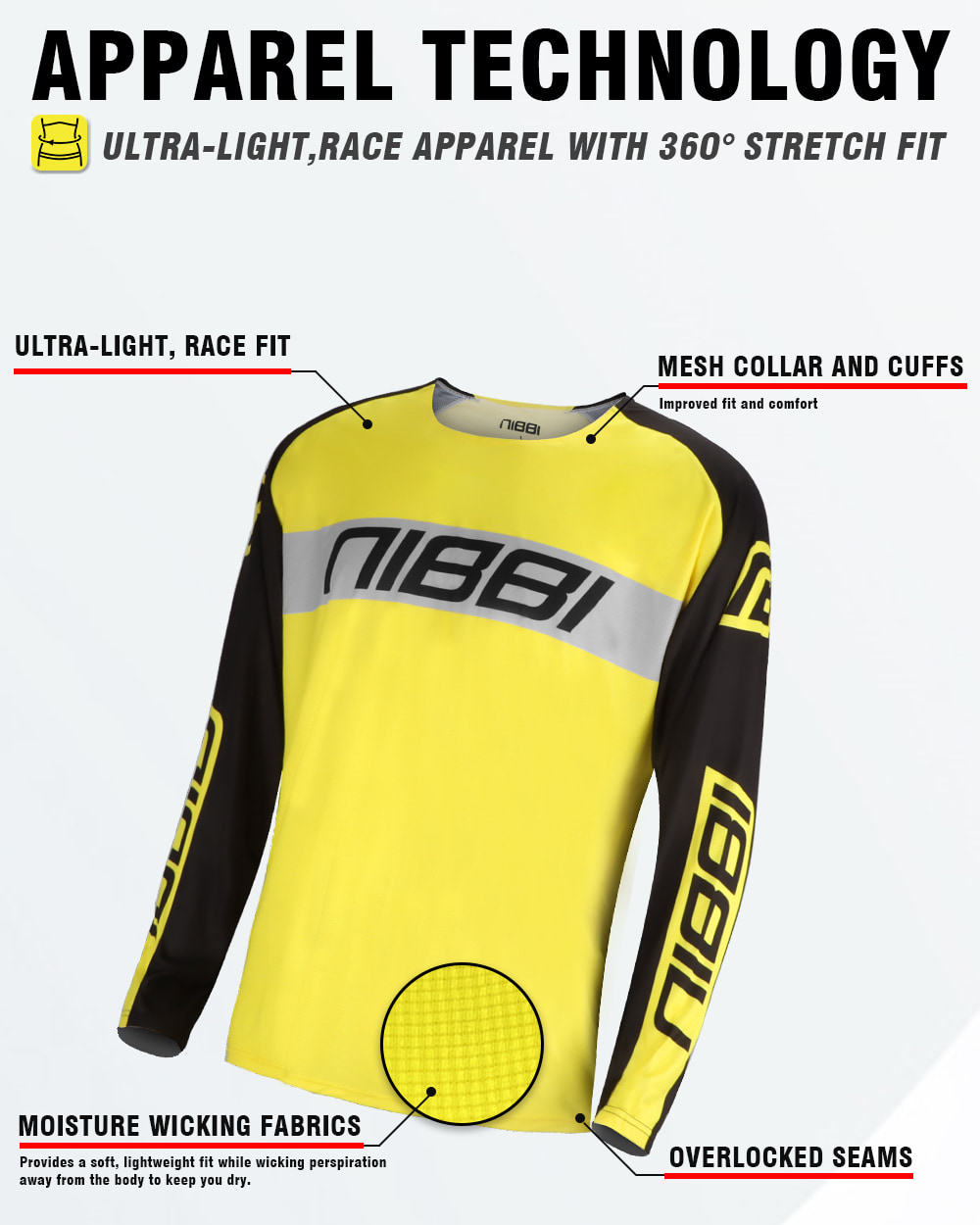 Nibbi Racing предлагает 3-месячную гарантию на AeroLite Cycling Suit от нечеловеческих повреждений ткани и изготовления. Пожалуйста, сохраните чек для послепродажной обработки.